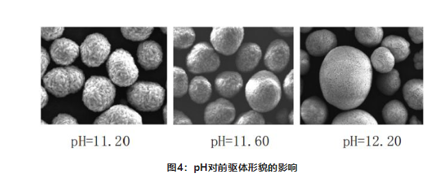 由于鎳、鈷、錳的沉淀pH值不同,所以不同組分的三元材料前驅(qū)體的最佳反應(yīng)pH值不同。